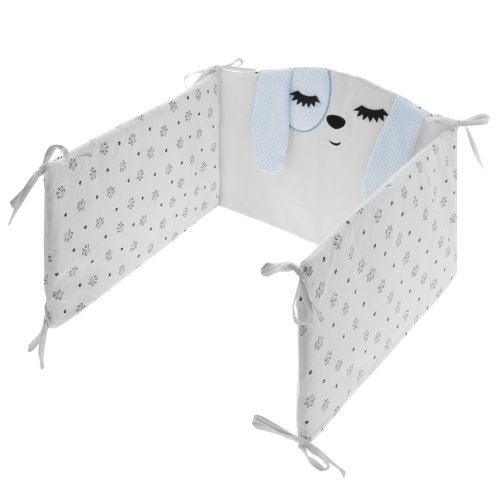 Krásná dětská bavlněná 5-dílná souprava do postýlky Belisima Lovely Puppy pro miminka. Souprava je zdobena krásným roztomilým pejskem. Je vyrobena z měkkého, příjemného materiálu. Souprava obsahuje povlečení na polštářek cca 40x60 cm, povlečení na peřinku cca 100x135 cm, mantinel cca 180 cm, výplň polštářek a peřinka. Materiál 100% bavlna.<BR>Tyto výrobky jsou bezpečné, protože:<BR>- přírodní bavlna nezpůsobuje odřeniny a podráždění, jelikož neobsahuje formaldehydy a další prvky, které kojencům škodí<BR>- neztrácí barvu a nezabarvuje oblečení<BR>- nabízené vzory jsou příjemné na pohled a mají uklidňující barvy<BR>- zipy používané u povlečení jsou tzv. "bezpečné zipy" bez volně visící koncovky, kterou by mohlo dítě utrhnout a spolknout<BR>- nejsou použity žádné knoflíky ani žádné další plastové nebo ocelové části, které mohou být pro Vaše dítě nebezpečné<BR>- materiál, který je používán pro výplně polštářů a přikrývek, je 100% protialergický, což znamená, že se v jeho vláknech nešíří žádné mikroorganismy ani plíseň.