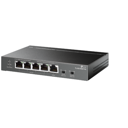 5portový gigabitový stolný PoE+ switch s 1 vstupným portom PoE++ a 4 výstupnými portami PoE+