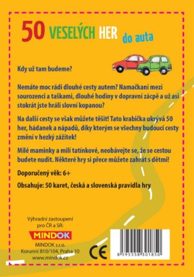 Kdy už tam budeme? Nemáte moc rádi dlouhé cesty autem? Namačkaní mezi sourozenci a taškami, dlouhé hodiny v dopravní zácpě a už asi stokrát jste hráli slovní kopanou? Na další cesty se však můžete těšit! Tato krabička ukrývá 50 her, hádanek a nápadů, díky kterým se všechny budoucí cesty změní v hezký v zážitek!