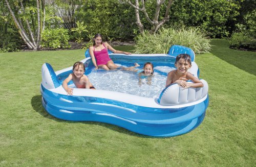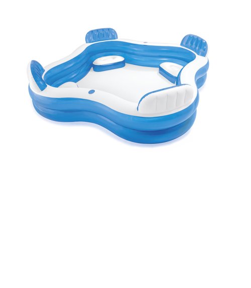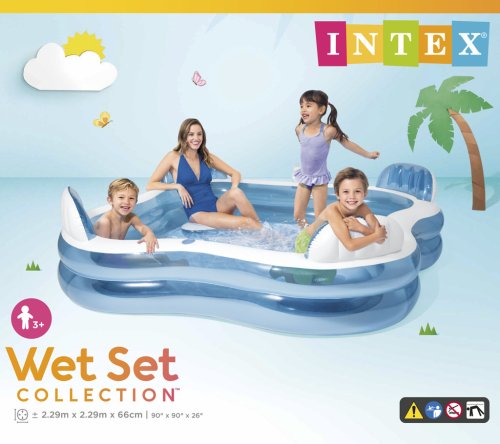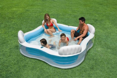 Pohodlný nafukovací bazén INTEX se čtyřmi rohovými sedáky s opěradly a dvěma držáky na nápoj poslouží k příjemnému ovlažení v horkých letních dnech! Užijte si vodní radovánky společně s vašimi dětmi v rodinném bazénu!