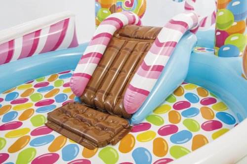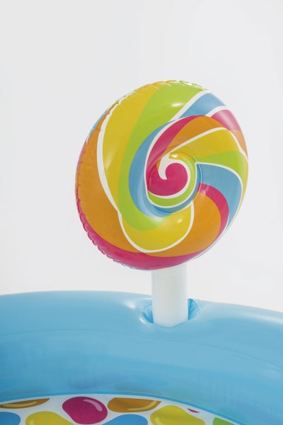 Nafukovací hrací centrum s motivem cukrátek. K oblouku lze napojit zahradní hadici, která poslouží jako chladivá sprška. Součástí balení je šest malých míčků a dvě velká nafukovací lízátka. V podlaze se nachází vypouštěcí ventil, možnost připojení zahradní hadice. Maximální nosnost je 81 kg, objem vody velkého bazénku 206 l, malého bazénku 168 l. Součástí je také opravná sada.