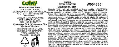 * Riziko utonutí: Nikdy nenechávejte děti bez dozoru v blízkosti bazénu. Používejte vhodné bezpečnostní prvky (ploty, sítě) a pravidelně kontrolujte jejich stav. Zajistěte, aby lidé, kteří neumějí plavat, používali vhodné zajišťovací prostředky. * Riziko zranění: Ujistěte se, že oblast kolem bazénu je bez překážek a udržujte ji čistou, abyste zabránili uklouznutí a pádům. * Chemické riziko: Pravidelně kontrolujte a upravujte hladinu chemikálií ve vodě (chlor, pH) podle doporučení výrobce. Chemické látky uchovávejte mimo dosah dětí a zvířat. Vyhněte se kontaktu chemikálií s pokožkou a očima. * Riziko úrazu elektrickým proudem: Nepoužívejte elektrické spotřebiče v blízkosti bazénu a ujistěte se, že elektrická instalace bazénu splňuje bezpečnostní normy. * Riziko znečištění vody: Pravidelně čistěte a dezinfikujte vodu v bazénu. Používejte vhodné filtry a čerpadla pro udržení čistoty vody. * Riziko poškození konstrukce: Pravidelně kontrolujte technický stav bazénu, včetně stěn, dna a okrajů. V případě zjištění poškození je ihned opravte. * Ochrana před sluncem: Používejte krémy s filtrem, sluneční brýle a pokrývky hlavy, abyste se chránili před škodlivým UV zářením. * Udržování čistoty: Bazén pravidelně čistěte, abyste zabránili růstu bakterií a řas. * Zakrytí bazénu: Zakryjte bazén, když se nepoužívá, abyste zabránili vniknutí nečistot a snížili riziko nehod. * Ochrana před přístupem: Chraňte bazén před přístupem neoprávněných osob, když se nepoužívá.