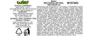 Dětský nafukovací bazének v modro – bílém provedení obdélníkového tvaru pro horké letní dny. Bazén s měkkou nafukovací podlahou zpříjemní koupání vašim dětem. Bazén je vyroben z kvalitního masivního vinylu o tloušťce 0,30 mm. Je vhodný nejen na zahradu, ale třeba také na balkón nebo terasu. Objem vody při výšce hladiny 17 cm činí 90 litrů. Pro drobná poškození je součástí balení opravná sada. Rozměry bazénu 166 x 100 x 25 cm. Rozměry balení 26 x 23 x 8 cm. Vhodné pro děti od 2 let.