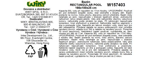 Rozměry bazénu 166 x 100 x 25 cm.