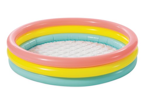 Dětský bazének je složený ze tří prstenců, každý z nich se nafukuje samostatně. Podlaha z měkčeného PVC zabraňuje odření a současně působí protiskluzově. Bazén lze umístit kdekoliv, kde bude nejmenším plavcům vyhovovat. Pod bazén je vhodné dokoupit ochranou podložku. Parametry bazénu: průměr: 1,14 m; výška: 0,25 m; objem: 131 l; váha balení: 1,16 kg. Obsah balení: bazén, sada na opravu.