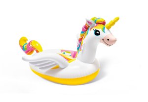 Nafukovací barevný jednorožec je vhodný jak do bazénu, tak na jezero nebo do moře. Tvar draka je přizpůsobený tak, aby umožňoval pohodlné sezení pro jedno dítě. Jednorožec je opatřen na bocích držátky.