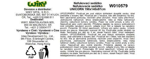 Materiál: vinyl (0,30 mm) Rozměry: 201x140x97 cm Nosnost do 40 kg Doporučený věk: od 3 let