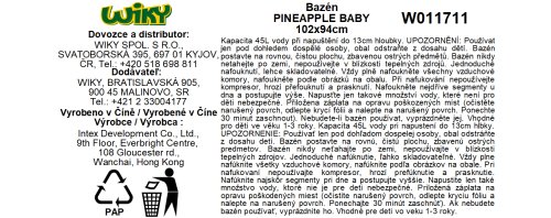 Bazén nafukovací se stříškou ananas . Rozměry 102 x 94 cm. Objem 45 L při výšce hladiny 13 cm.