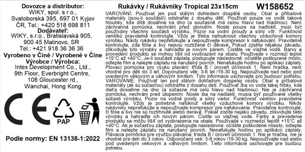Plovací rukávky Tropical Buddies jsou vhodnou pomůcku pro začátky plavání pro děti od 3 do 6 let. Mají dvě vzduchové komory a roztomilý potisk podvodního světa. Kvalitní odolný mateirál 0,2mm vinyl, nosnost: 18-30 kg. Rozměr 23x15 cm. Vhodné pro děti od 3 do 6 let.