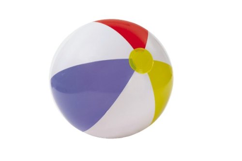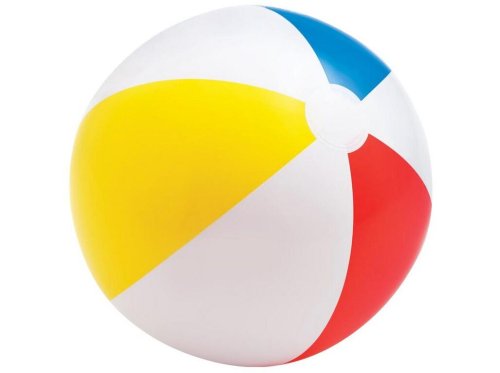 Nafukovací velký míč s barevnými pruhy. Vhodný do vody a nebo na plážový volejbal. Průměr 51 cm. Věk: 3+