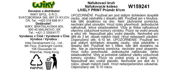 Nafukovací barevný kruh pro letní horké dny Nafukovací kruh LIVELY s průměrem 61 cm, perfektní pomůcka pro neplavce.