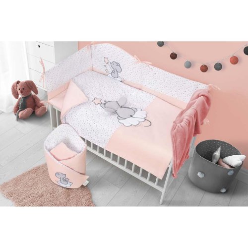 Krásná dětská bavlněná 6-dílná souprava do postýlky Belisima Cute Mouse pro miminka. Je vyrobena z měkkého, příjemného materiálu. Souprava obsahuje povlečení na polštářek cca 40x60 cm, povlečení na peřinku cca 90x120 cm, mantinel cca 180 cm, výplň polštářek a peřinka, nebesa. Materiál 100% bavlna.<BR>Tyto výrobky jsou bezpečné, protože:<BR>- přírodní bavlna nezpůsobuje odřeniny a podráždění, jelikož neobsahuje formaldehydy a další prvky, které kojencům škodí<BR>- neztrácí barvu a nezabarvuje oblečení<BR>- nabízené vzory jsou příjemné na pohled a mají uklidňující barvy<BR>- zipy používané u povlečení jsou tzv. "bezpečné zipy" bez volně visící koncovky, kterou by mohlo dítě utrhnout a spolknout<BR>- nejsou použity žádné knoflíky ani žádné další plastové nebo ocelové části, které mohou být pro Vaše dítě nebezpečné<BR>- materiál, který je používán pro výplně polštářů a přikrývek, je 100% protialergický, což znamená, že se v jeho vláknech nešíří žádné mikroorganismy ani plíseň.