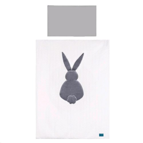 Dětská 6-dílná souprava do postýlky Belisima Králíček pro miminka. Souprava je z jedné strany z úpletového materiálu zdobena 3D vzorem a roztomilým plyšovým králíčkem. Druhá strana je bavlněná. Je vyrobena z měkkého, příjemného materiálu. Složení: vrchní úpletová strana: 50% bavlna, 50% polyester. Spodní strana: 100% bavlna. Souprava obsahuje povlečení na polštářek cca 40x60 cm, povlečení na peřinku cca 90x120 cm, mantinel cca 180 cm, výplň: polštářek, peřinka a nebesa. Nebesa: 150x200 cm.<BR>Tyto výrobky jsou bezpečné, protože:<BR>- přírodní bavlna nezpůsobuje odřeniny a podráždění, jelikož neobsahuje formaldehydy a další prvky, které kojencům škodí<BR>- neztrácí barvu a nezabarvuje oblečení<BR>- nabízené vzory jsou příjemné na pohled a mají uklidňující barvy<BR>- zipy používané u povlečení jsou tzv. "bezpečné zipy" bez volně visící koncovky, kterou by mohlo dítě utrhnout a spolknout<BR>- nejsou použity žádné knoflíky ani žádné další plastové nebo ocelové části, které mohou být pro Vaše dítě nebezpečné<BR>- materiál, který je používán pro výplně polštářů a přikrývek, je 100% protialergický, což znamená, že se v jeho vláknech nešíří žádné mikroorganismy ani plíseň.