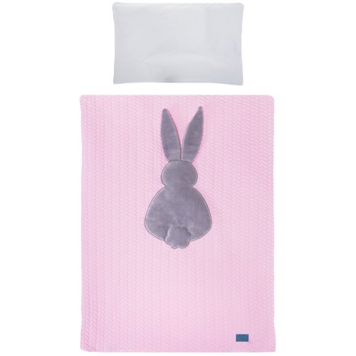 Dětská 6-dílná souprava do postýlky Belisima Králíček pro miminka. Souprava je z jedné strany z úpletového materiálu zdobena 3D vzorem a roztomilým plyšovým králíčkem. Druhá strana je bavlněná. Je vyrobena z měkkého, příjemného materiálu. Složení: vrchní úpletová strana: 50% bavlna, 50% polyester. Spodní strana: 100% bavlna. Souprava obsahuje povlečení na polštářek cca 40x60 cm, povlečení na peřinku cca 90x120 cm, mantinel cca 180 cm, výplň: polštářek, peřinka a nebesa. Nebesa: 150x200 cm.<BR>Tyto výrobky jsou bezpečné, protože:<BR>- přírodní bavlna nezpůsobuje odřeniny a podráždění, jelikož neobsahuje formaldehydy a další prvky, které kojencům škodí<BR>- neztrácí barvu a nezabarvuje oblečení<BR>- nabízené vzory jsou příjemné na pohled a mají uklidňující barvy<BR>- zipy používané u povlečení jsou tzv. "bezpečné zipy" bez volně visící koncovky, kterou by mohlo dítě utrhnout a spolknout<BR>- nejsou použity žádné knoflíky ani žádné další plastové nebo ocelové části, které mohou být pro Vaše dítě nebezpečné<BR>- materiál, který je používán pro výplně polštářů a přikrývek, je 100% protialergický, což znamená, že se v jeho vláknech nešíří žádné mikroorganismy ani plíseň.