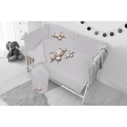 Krásná dětská bavlněná 6-dílná souprava do postýlky Belisima Lazy Bear pro miminka. Je vyrobena z měkkého, příjemného materiálu. Souprava obsahuje povlečení na polštářek cca 40x60 cm, povlečení na peřinku cca 100x135 cm, mantinel cca 180 cm, výplň polštářek a peřinka, nebesa. Materiál 100% bavlna.<BR>Tyto výrobky jsou bezpečné, protože:<BR>- přírodní bavlna nezpůsobuje odřeniny a podráždění, jelikož neobsahuje formaldehydy a další prvky, které kojencům škodí<BR>- neztrácí barvu a nezabarvuje oblečení<BR>- nabízené vzory jsou příjemné na pohled a mají uklidňující barvy<BR>- zipy používané u povlečení jsou tzv. "bezpečné zipy" bez volně visící koncovky, kterou by mohlo dítě utrhnout a spolknout<BR>- nejsou použity žádné knoflíky ani žádné další plastové nebo ocelové části, které mohou být pro Vaše dítě nebezpečné<BR>- materiál, který je používán pro výplně polštářů a přikrývek, je 100% protialergický, což znamená, že se v jeho vláknech nešíří žádné mikroorganismy ani plíseň.