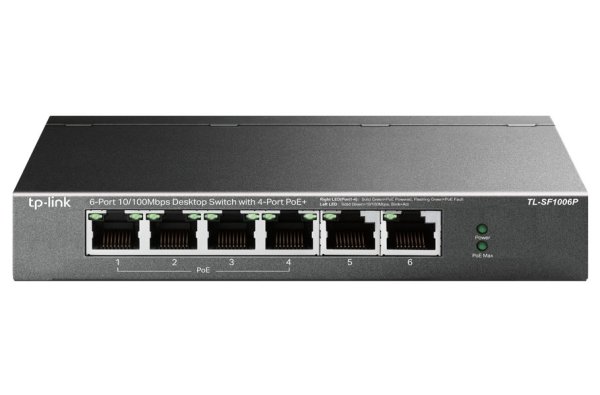 Profesionální 6portový 10/100 Mbps neřízený PoE+ switch, který nevyžaduje žádnou konfiguraci (Plug and Play) a je vybaven 4 PoE+ porty (802.3af/at) pro přenos dat i napájení.