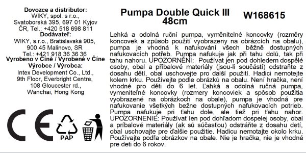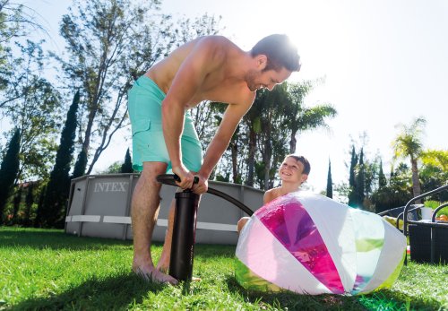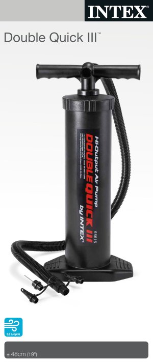 Vysoce výkonná vzduchová pumpa pro rychlé nafouknutí nebo vyfouknutí nafukovacích výrobků. VYBAVENÍ flexibilní hadice, 3 různé tryskové nástavce MAX. TLAK 8 psi Objem vzduchu max. 4,39 l/zdvih Výška 48 cm FUNKCE nafouknutí nebo vyfouknutí nafukovacích výrobků