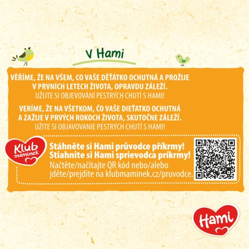 V Hami věříme, že na všem, co vaše děťátko ochutná a prožije v prvních letech života, opravdu záleží. Naučit miminko oblíbit si zdravé jídlo je přitom někdy docela výzva. Abyste to měly snazší, jsme v tom s Vámi. Proto přípravě příkrmů pro vaše nejmenší věnujeme tu největší péči.