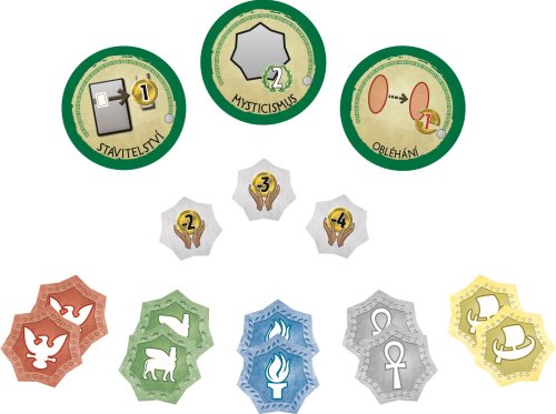 <p> <b>Rozšíření pro hru 7 Divů světa: DUEL</b> </p> <p>Toto rozšíření dodá hráčům ještě větší prožitek ze hry a nabízí možnost vyvolat mocná božstva, díky kterým budete moci využít zvláštní schopnosti a tím zcela změnit rytmus celé hry.</p> <p>Získej si přízeň božstev, nebo pocítíte jejich hněv!</p> <p>Počet hráčů: 2</p> Obsah balení:<br> 1 deska panteonu<br> 15 karet božstev<br> 1 karta brány<br> 5 karet velkého chrámu<br> 2 karty divů<br> 10 žetonů mytologie<br> 3 žetony obětin<br> <br> Upozornění: K tomuto rozšíření je potřeba základní hra 7 divů světa: DUEL.<br> Toto rozšíření je kompatibilní s rozšířením Agora.