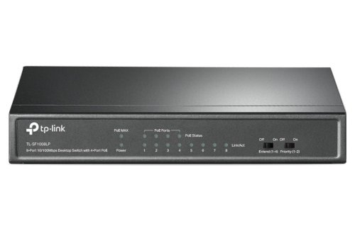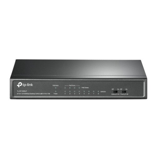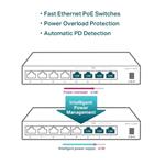 Profesionální 8portový 10/100 Mbps neřízený PoE switch, který nevyžaduje žádnou konfiguraci (Plug and Play) a je vybaven 4 PoE porty (802.3af) pro přenos dat i napájení.