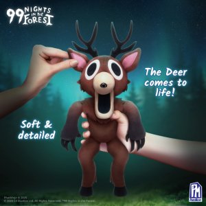 Vstup do temného světa 99 Nights in the Forest s oficiálně licencovaným Deluxe plyšákem „The Deer“ (Jelen) od značky PhatMojo. Tento ikonický jelen z populární hry zaujme svým tajemným vzhledem a detailním zpracováním, které ocení fanoušci i sběratelé. Plyšák má výšku přibližně 31,8 cm a je vyroben z měkkých, kvalitních materiálů s pečlivě vyšitými detaily. Hodí se jak na mazlení, tak jako výrazný sběratelský kousek na vystavení. Součástí balení je také kód pro odemknutí digitálního obsahu (DLC) v Robloxu, který přidává herní bonusy do hry 99 Nights in the Forest.