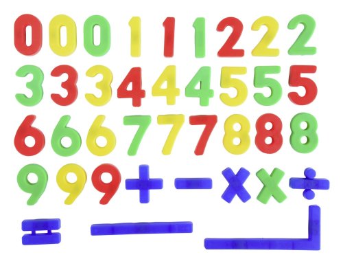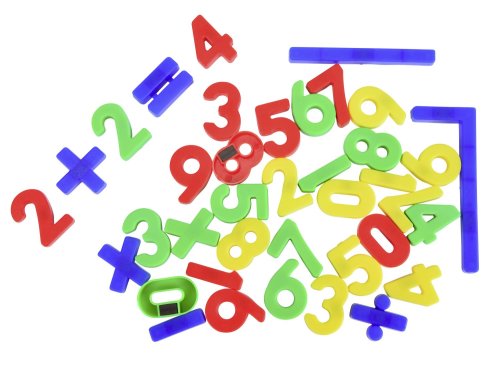 Sada magnetických čísel a matematických znaků. Celkem obsahuje 37 ks.