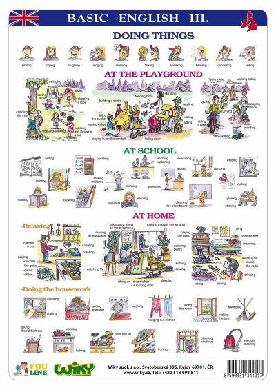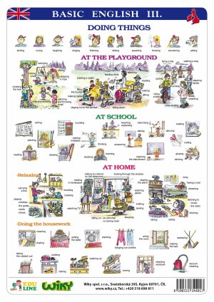 Lehkou formou, pomocí humorných ilustrací, napomáhá rozvíjet řečové dovednosti o přibližně 100 nových slovíček - sloves.
