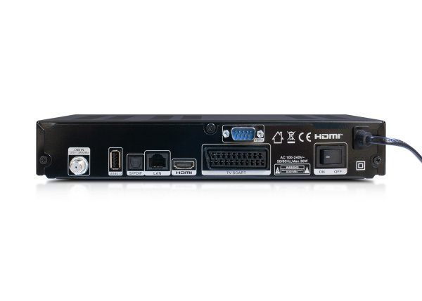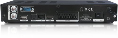 1x DVB-S2 / DVB-S tuner 1x čtečka karet 1x HDMI port 1x konektor SCART 1x RS232 2x USB 2.0 (1x přední, 1x zadní panel) 1x LAN RJ 45 1x S / PDIF optický digitální audio výstup
