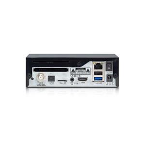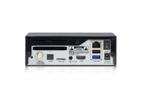 Technická specifikace: 1x tuner DVB-S2X Procesor: QUAD CORE, 15 000 DMIPS Flash: 8GB EMMC RAM: 1GB DDR4 1x čtečka karet 1x CI slot 1x HDMI 1x slot pro microSD kartu (možné nahrávání na microSD kartu) 1x USB 3.0 + 1x USB 2.0 Video decoding: 4K x 2K@60 10-bit decoding, 1920 x 1080, 1280 x 720, 720 x 480, 720 x 576 HDR/HDR10 a HLG Transcoding: Multi transcoding a Multiroom podpora LED stavová dioda Ethernet RJ45: 10/100 Mbps S/PDIF optický digitální audio výstup IR extender pro IR oko (nachází se v balení) Video Format: 4:3 Letter Box, 4:3 Pan Scan, 16:9 Video Decoding: MPEG1, MPEG2, H264, H265 HEVC, CAVS, VP8, VP9 Audio Decoding: MPEG-1 layer I/II, PCB down