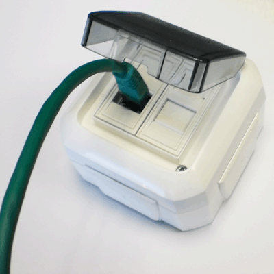 ABB Datová zásuvka OUTDOOR IP54 STP CAT5E 2xRJ45 SPECIFIKACE * venkovní zásuvka s krytím IP54 * IP45 při zavřeném krytu, IP20 při otevřeném krytu * 2 x RJ45 porty * stíněné provedení * protiprachové …