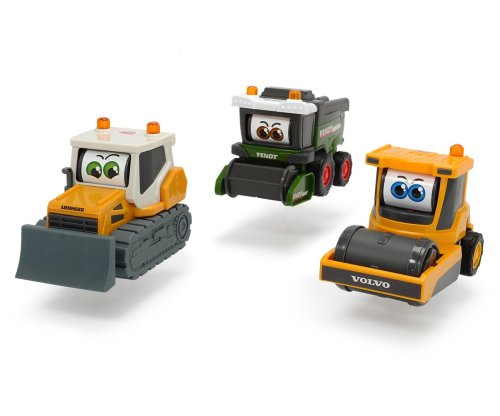 Veselé pracovní autíčko pro nejmenší, na volnoběh a při jízdě koulí očima. 3 druhy: Fendt kombajn, Volvo kompaktor nebo Liebherr buldozer. Délka 16 cm.