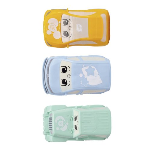 Veselé autíčko pro nejmenší, na natažení. Namalovaná očíčka a stlačitelné tělo. 3 druhy - Jeep, Mercedes, Volkswagen bus. Délka 11 cm.