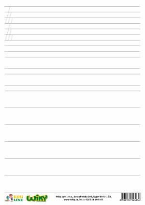 Zadní strana tabule umožňuje nácvik psaní písmen podle normy psaní v řádcích (linkách) a také správný sklon písma, který je vyznačený v prvních řádcích.