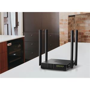 Dvoupásmový bezdrátový Wi-Fi router pracující na frekvencích 2,4 a 5 GHz standardu 802.11a/b/g/n/ac. Čtyři externí antény poskytují stabilní bezdrátové připojení a optimální pokrytí. V pásmu 2,4 GHz dosahuje přenosových rychlostí až 300 Mbit/s a v pásmu 5 GHz až 867 Mbit/s. Na zadní straně disponuje čtyřmi RJ-45 LAN porty a jedním RJ-45 WAN portem.