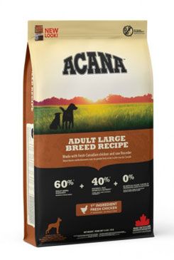 PŘIPRAVOVÁNO V NAŠICH OCEŇOVANÝCH KUCHYNÍCH V KANADĚ. ACANA ADULT LARGE BREED PŘEKYPUJE ČERSTVÝMI MÍSTNÍMI SUROVINAMI VČETNĚ VOLNĚ CHOVANÝCH KUŘAT, VAJEC Z HNÍZDNÍCH CHOVŮ, PLATÝSE LOVENÉHO VOLNĚ V PŘÍRODĚ A NA SLUNCI ZRAJÍCÍHO OVOCE A ZELENINY – VŠECHNY SUROVINY DODÁVAJÍ VÝŽIVU A CHUTNOST A ZAJIŠŤUJÍ TAK VRCHOLOVOU KONDICI PSŮ VELKÝCH PLEMEN. PŘEČTĚTE SI NAŠE SLOŽENÍ A MYSLÍME, ŽE S NÁMI BUDETE SOUHLASIT.