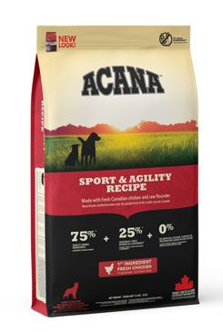 PŘIPRAVOVÁNO V NAŠICH OCEŇOVANÝCH KUCHYNÍCH V KANADĚ. ACANA SPORT & AGILITY PŘEKYPUJE ČERSTVÝMI MÍSTNÍMI SUROVINAMI VČETNĚ VOLNĚ CHOVANÝCH KUŘAT, VAJEC Z HNÍZDNÍCH CHOVŮ, PLATÝSE LOVENÉHO VOLNĚ V PŘÍRODĚ A NA SLUNCI ZRAJÍCÍHO OVOCE A ZELENINY – VŠECHNY SUROVINY DODÁVAJÍ VÝŽIVU A CHUTNOST A ZAJIŠŤUJÍ TAK VRCHOLOVOU KONDICI AKTIVNÍCH PSŮ. ACANA ZARUČUJE, ŽE UDRŽÍ VAŠEHO PSA SPOKOJENÉHO, ZDRAVÉHO A SILNÉHO. PŘEČTĚTE SI NAŠE SLOŽENÍ A MYSLÍME, ŽE S NÁMI BUDETE SOUHLASIT.