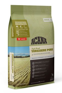 KRMIVO S JEDINÝM ZDROJEM ŽIVOCIŠNÉHO PROTEINU ACANA YORKSHIRE PORK OBSAHUJE 50% YORKSHIRSKÉHO VEPŘOVÉHO, KTERÉ JE NÁM DODÁVANÉ ČERSTVÉ V PODÍLU CELÉ KOŘISTI. DÍKY VÝTAŽKU Z MRAZEM SUŠENÝCH JATER CHUTNÁ I VYBÍRAVÝM JEDLÍKŮM. ČERSTVÉ DÝNĚ A MÁSLOVÉ DÝNĚ POSKYTUJÍ ROZPUSTNOU VLÁKNINU, COŽ PROSPÍVÁ PSŮM S CITLIVÝM ZAŽÍVÁNÍM.