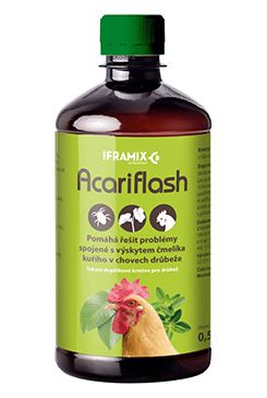 Přípravek proti čmelíkům Acariflash je přírodní tekuté doplňkové krmivo pro drůbež, na bázi výtažků z rostlin, které jsou čmelíkům nepříjemné a odpuzující. Jedná se o přírodní řešení v boji proti čmelíkům. U čmelíků způsobuje snížený příjem krve a významně tak snižuje jejich rozmnožovací schopnosti. Aromatické látky v žádném případě neprochází ani do vajec ani do masa a nemění tak jejich kvalitu či chuťové vlastnosti.