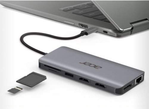 ACER 12v1 docking station/dongle USB-C: 2×USB3.2, 2×USB2.0, čtečka 1×SD/TF 2×HDMI,1×PowerDelivery,1×DP,1×RJ45,1×3.5 Audio
