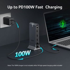 Univerzální USB-C dokovací stanice Acer HP.DSCAB.022 nabízí 15 funkcí v jednom – 8K video výstup, rychlé USB porty, čtečku karet, Ethernet a Power Delivery. Ideální pro práci i cestování.