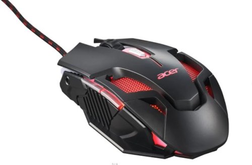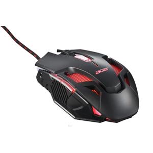Acer NITRO GAMING MOUSE II - herní myš optická, max. 7200dpi (6 úrovní - 800-7200), 7 typů podsvícení, 6 tlačítek (2 postranní FWD, BWD), akcelerace 20G, Frame rate 7000 fps, polling rate 125MHz, životnost >3 mil. kliknutí, golden USB konektor, opletený kabel 1,8m, rozměry 128 x 73 x 50 mm, hmotnost 146g, black
