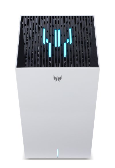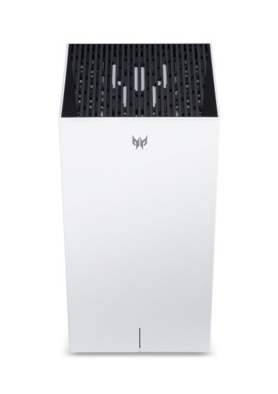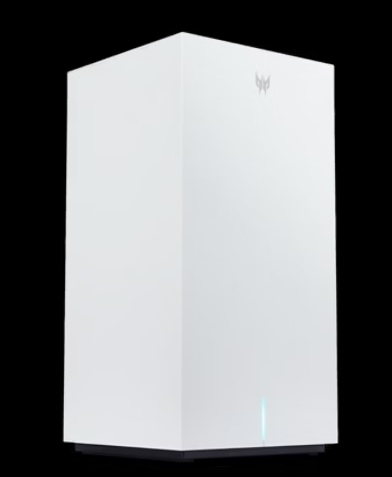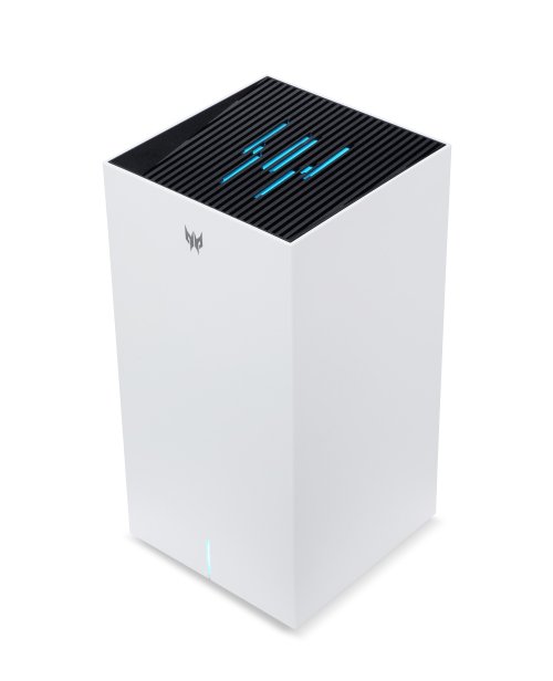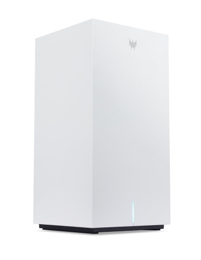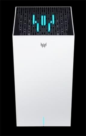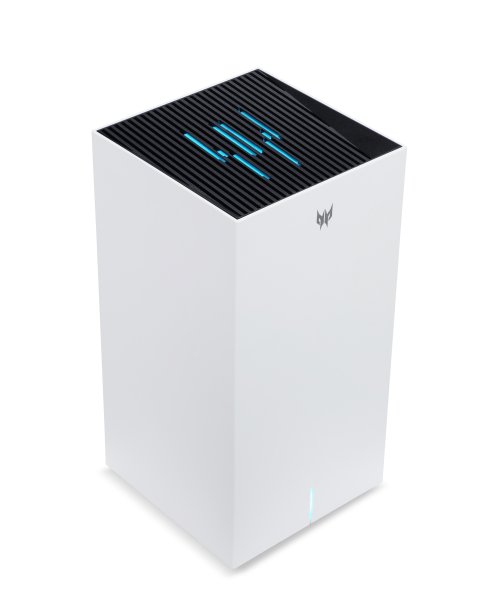 Predator Connect T7 - Wifi 7 Mesh Router, 802.11 b/g/n/ac/ax/be 2x2 Tri band 2.4GHz+5GHz+ 6GHz, MLO, Hybrid QoS, Intel Killer Prioritisation Engine, Trend Micro Network Security, Qualcomm CPU, 1GB Mem, 512MB storage, 1x WAN 2.5GbE, 2x LAN 1GbE, Power button, Pin Hole reset, WPS button, Internal Antennas, Adapter 12 V / 3 A, EU plug, 109x109x212 mm, 915 g, Predator Connect App, White with Blue LED