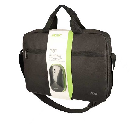 Acer Starter Kit 16'' Carry Bag + Mouse - 16'' Carry Bag černá s jednou hlavní kapsou a jednou boční kapsou, myš Dual-Mode (RF 2.4G + BT 5.2) černá s magnetickým krytem, DPI: 800/1200/1600, na baterii 1x AA (až 300 h)