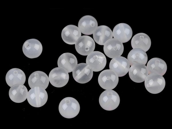[Přírodní minerální korálky z bílého achátu] jsou jedinečné svou poloprůsvitnou, mléčnou barvou. Svou velikostí jsou ideální na výrobu Buddhových náramků a jiných šperků. Jsou oblíbené na techniku drátování, v kombinaci s drahými kovy, ale i s obyčejnými drátky. Skvěle vypadají i na jednoduchých návlekových šňůrách, [které zajímavě ozvláštní.]