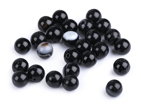 [Korálky z černého achátu] jsou oblíbené především šperkaři pro svou jedinečnou kresbu a barvy. Svou velikostí jsou ideální na výrobu Buddhových náramků. Jsou oblíbené na techniku drátování, v kombinaci s drahými kovy, ale i s obyčejnými drátky. Skvěle vypadají i na jednoduchých návlekových šňůrách , [které zajímavě ozvláštní.]