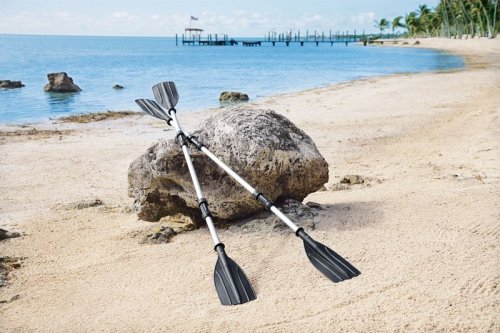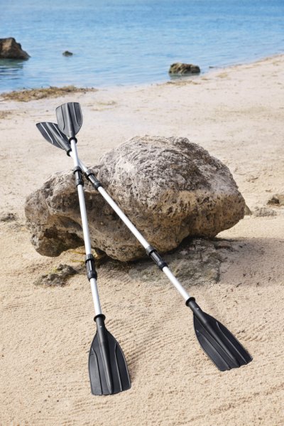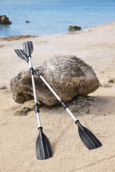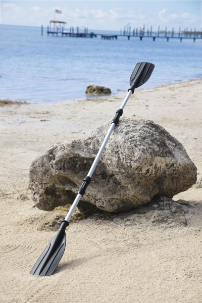 Multifunkční použití. Jednoduché pádlo nebo dvojité pádlo. Snadná montáž a demontáž. Pevné spojky a čepele s otočnou pojistkou. Lopatka s dvojím ostřím. Lehký a pevný plastový a hliníkový materiál. Délka: 145 cm.