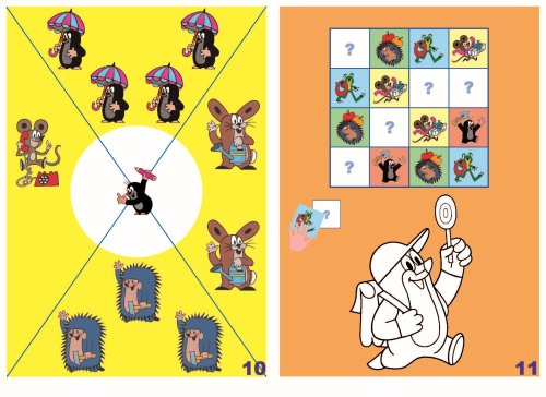 obálka s lesklou povrchovou úpravou + 24 vnitřních stran + samolepky, na každé stránce jsu aktivní prvky spojené s poznáváním barev, tvarůb včetně písmen a číslic, jednoduchého počítání, hlavolamy, bludiště, dětské sudoku atd., pro kontrolu správnosti je uvedeno správné řešení