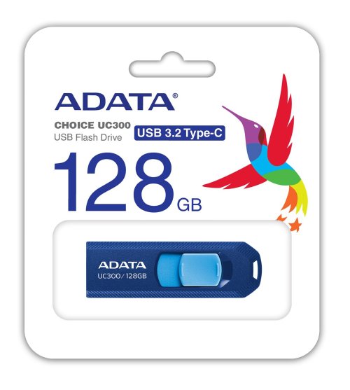 ADATA USB Flash Drive UC300 Rozhraní: USB 3.2 Gen1 s rychlostí 5Gb/s - typ C Kapacita: 128 GB Velikost: 63 x 20 x 10mm Barva: modrá
