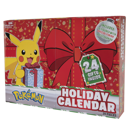 Pokémon adventní kalendář obsahuje 16 figurek + další příslušenství. Každý den přinese nové překvapení, protože když otevřete dvířka s dalším číslem, najdete za nimi figurku Pokémona (celkem je tam až 16 různých hrdinů, mezi nimi Pikachu, Squirtle, Bulbasaur a Eevee) nebo předmět spojený s Vánocemi (celkem 8)! Adventní kalendář obsahuje až 24 dílků a jistě potěší každého fanouška Pokémonů!