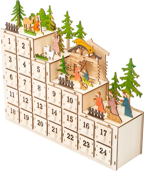 Nemůže se váš potomek dočkat Vánoc? Zpříjemněte mu čekání originálním adventním kalendářem s betlémskou tématikou od značky Small Foot. Krásné dřevěné zpracování slouží jako vánoční dekorace. Všech 24 okének můžete naplnit libovolnými odměnami. Kalendář je navíc vybavený světly, která napájíte pomocí baterií (nejsou součástí balení). Velkou výhodu je, že ho můžete použít opakovaně každý rok.